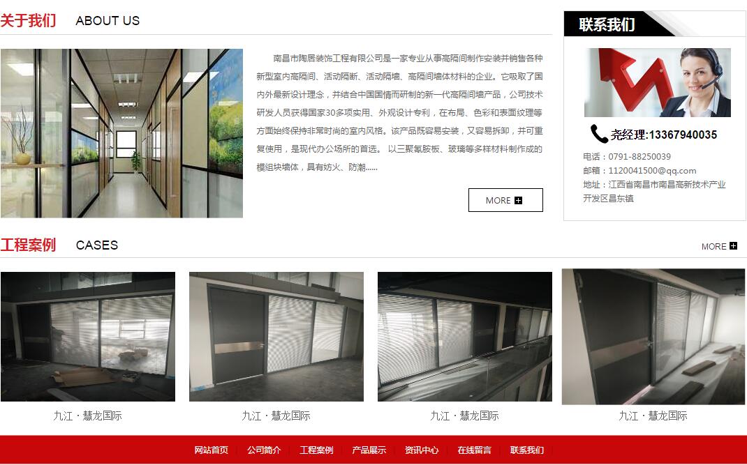 南昌市陶居裝飾工程有限公司是一家專業(yè)從事高隔間制作安裝并銷售各種新型室內(nèi)高隔間、活動隔斷、活動隔墻、高隔間墻體材料的企業(yè)。它吸取了國內(nèi)外最新設(shè)計理念,并結(jié)合中國國情而研制的新一代高隔間墻產(chǎn)品,公司技術(shù)研發(fā)人員獲得國家30多項實用、外觀設(shè)計專利,在布局、色彩和表面紋理等方面始終保持非常時尚的室內(nèi)風格。該產(chǎn)品既容易安裝,又容易拆卸,并可重復使用,是現(xiàn)代辦公場所的首選。