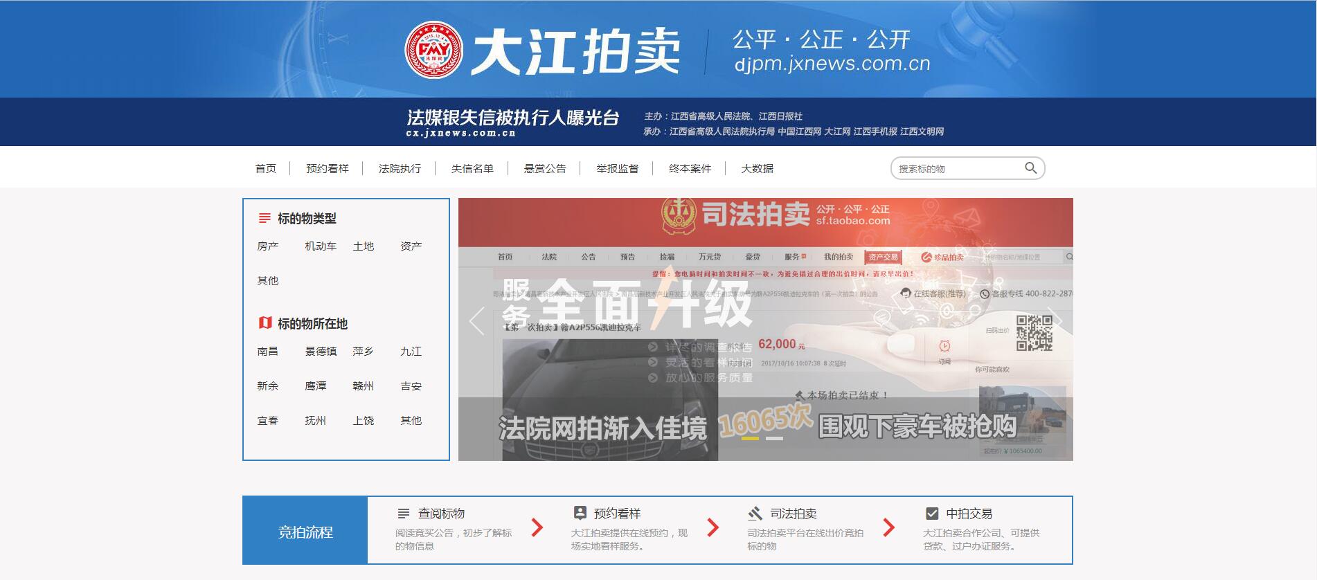 江西日報社旗下中國江西網與江西省最高人民法院聯(lián)合委托南昌雅騰信息科技有限公司開發(fā)的“大江拍賣”平臺。