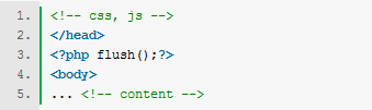 用戶端發(fā)送瀏覽請求后,服務(wù)器端一般要花銷200-500ms去處理這些請求,在此期間,用戶端瀏覽器處于等待狀態(tài),如果要減少用戶等待時(shí)間,可以在適當(dāng)?shù)奈恢檬褂胒lush,將已經(jīng)就緒的內(nèi)容推送到用戶端,這在php中很容易實(shí)現(xiàn)例如: