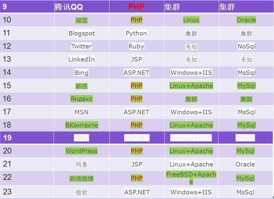 看到了嗎?通過以上的數(shù)據(jù)統(tǒng)計(jì),我們會(huì)發(fā)現(xiàn)大部分的互聯(lián)網(wǎng)站平臺(tái)都用PHP開發(fā)的,比如、facebook、雅虎、百度、淘寶、新浪、維基百科、新浪微博、搜搜、鳳凰網(wǎng)、360、天貓等等一系列主流互聯(lián)網(wǎng)平臺(tái)都是用PHP開發(fā)的,那么對(duì)于企業(yè)網(wǎng)站呢,可以說90%都是用PHP開發(fā)而成。